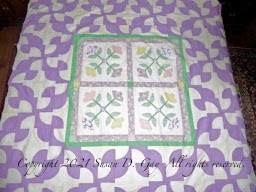 #4: And don't forget the green stems set on the diagonal that mimics the "X" of the purple Drunkard's Path squares. It all relates despite being two different types of blocks.